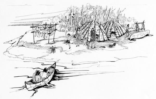 The Arrival Jérémie Giles 1999 The summer season was a time for meeting friends and family after a long winter; a time to replenish body and soul. Below, Asticou, the Chaudières falls between Ottawa and Hull. Photo: Jean-Luc Pilon 2000 Samuel de Champlain witnessed the offering of tobacco to the spirit that inhabits the falls. Today, this spiritual place is all but destroyed by a hydroelectric dam, and access to the site is virtually impossible. |